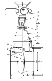 4、閘板密封面是壓在閥體上進(jìn)行止水的,因此關(guān)閉力矩小,密封面不易受損,壽命長(zhǎng).