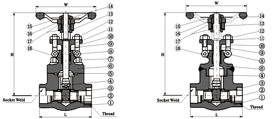 鍛鋼閘閥有三種閥蓋設(shè)計形式。第一種是螺栓式閥蓋,按這種設(shè)計的閥門,其閥體與閥蓋用螺栓螺母連接,纏繞式墊片(316夾柔性石墨制造)。客戶有特殊要求時也可采用金屬環(huán)連接。第二種設(shè)計形式是焊接式閥蓋,按這種設(shè)計形式的閥門,其閥體與閥蓋用螺紋連接,全焊密封。客戶有特殊要求時也可采用合焊透連接。第三種是壓力自緊式閥蓋,按這種設(shè)計形式設(shè)計的閥門,其閥體與閥蓋用螺紋連接,內(nèi)壓自密封環(huán)密封。